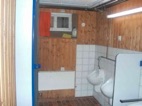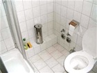 Auf den Stockwerken verteilt befinden sich die sanitären Einrichtungen mit insgesamt drei Duschen und drei Toiletten (WCs)