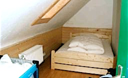Im Obergeschoss sind hauptsächlich Ruhe- und Schlafräume als 2-, 3- und 11-Bett-zimmer untergebracht. Die Betten haben die Maße 140cm x 200cm sowie 90cm x 200cm